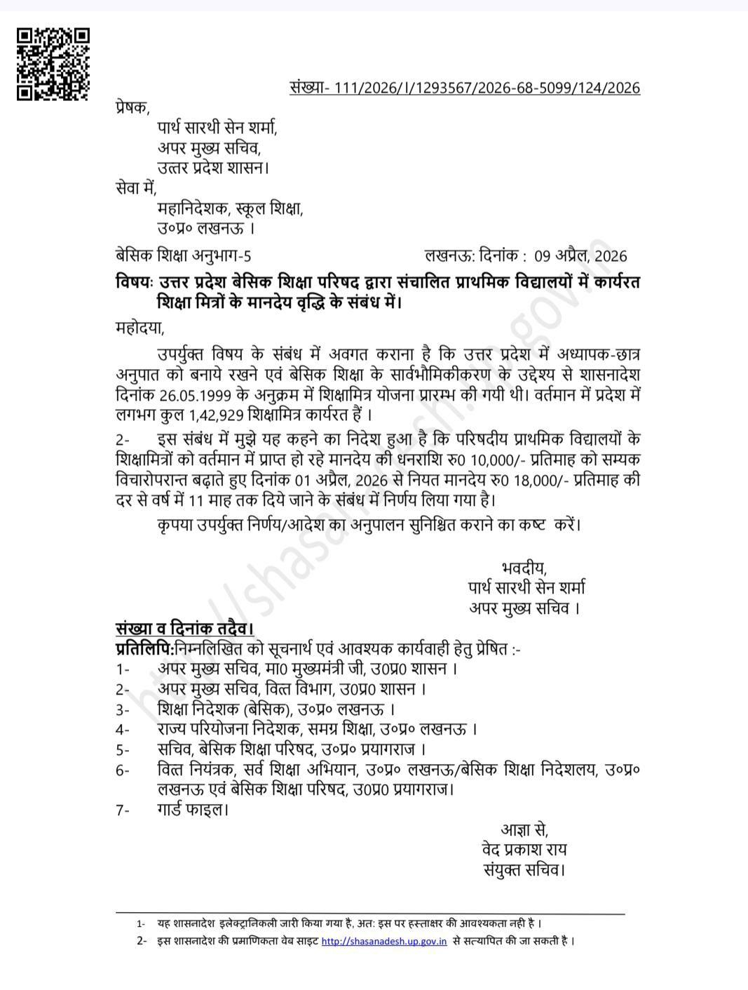• शिक्षा विभाग के अनुसार यह बढ़ोतरी शिक्षामित्रों और अनुदेशकों के आर्थिक सहयोग को मजबूत करेगी।